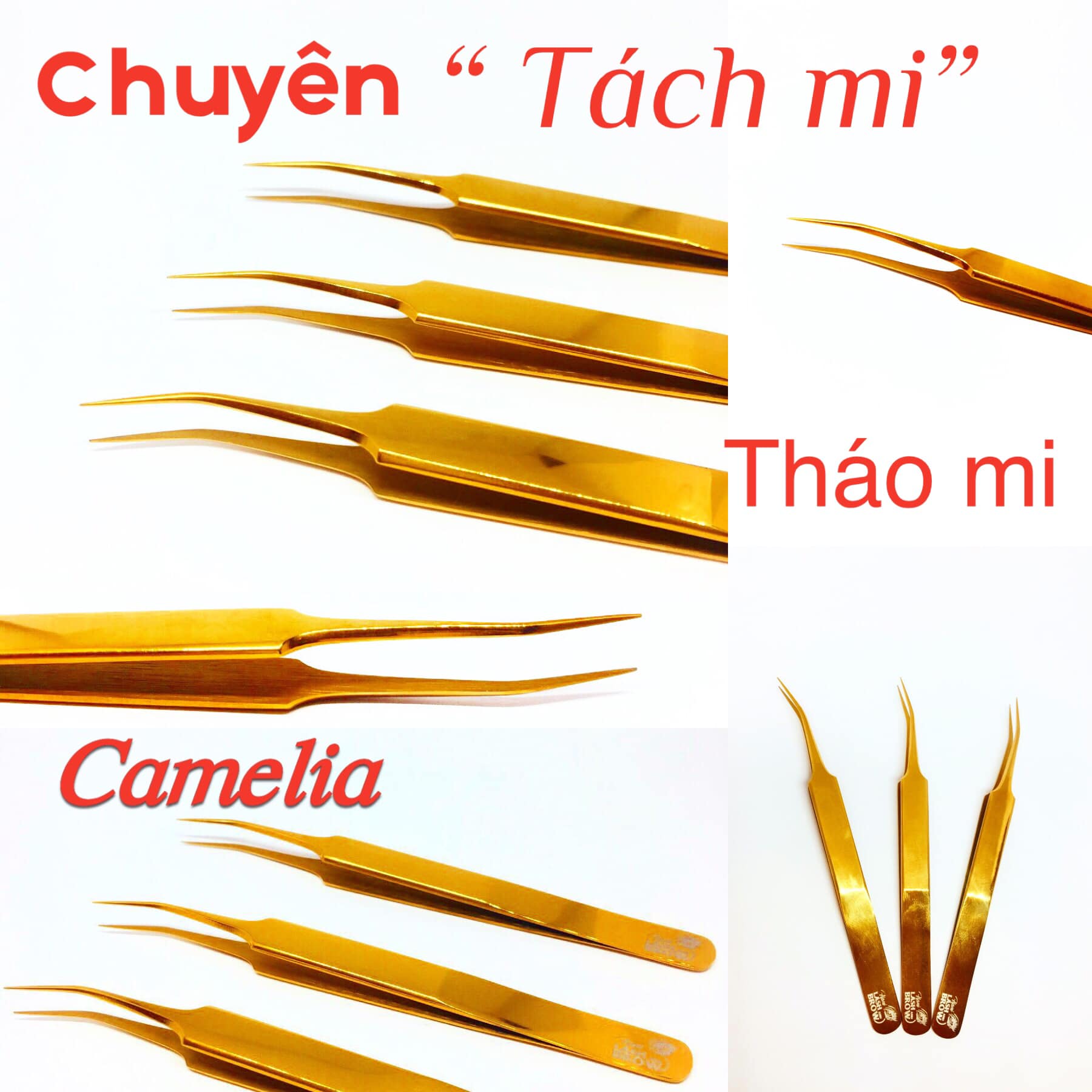 + Nhíp tách cong Camelia: dành cho các chị mới vào nghề, còn bỡ ngỡ với thao tác tách mi, rung tay và sợ đâm vào mắt khách, sử dụng nhíp này sẽ vừa tách nhanh, mũi nhíp thon giúp tách dễ dàng hơn, bên cạnh đó nhíp này còn hỗ trợ tháo mi tốt.