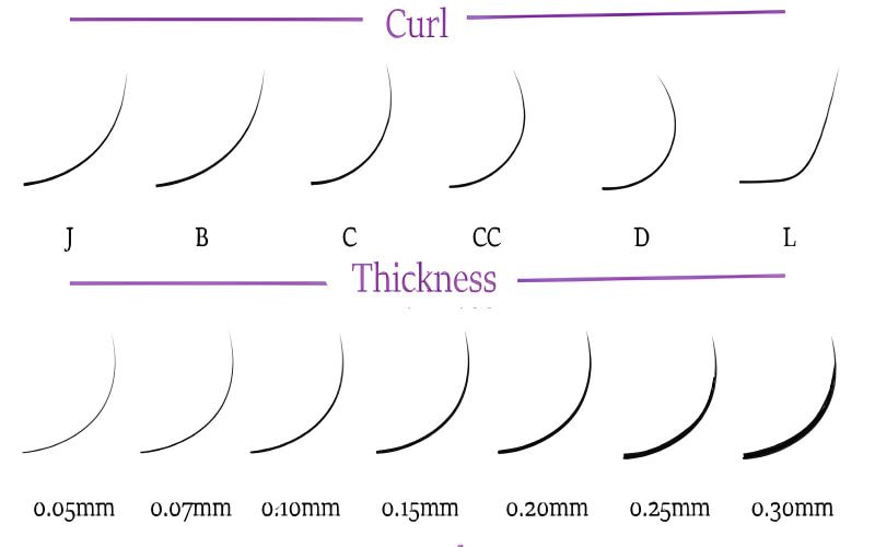 - J Curl: Độ cong nhẹ nhàng, phù hợp với kiểu mi classic, volume 2D hoặc 3D, mang lại cảm giác tự nhiên, mềm mại, đặc biệt thích hợp với những khách hàng yêu thích vẻ đẹp đơn giản, thanh lịch.