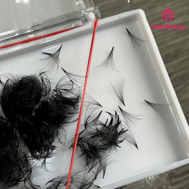 Mi fan sẵn chuyên nghiệp được tạo bằng tay với 3, 4, 5,…10 sợi có phần gốc chụm lại với nhau, ngọn xòe đều. Thiết kế này giúp thợ dễ dàng lấy từng fan mi mà không làm rối hay gãy sợi. Nhờ đó, thao tác nối mi trở nên nhanh chóng và chính xác hơn rất nhiều so với việc tự tạo fan thủ công.