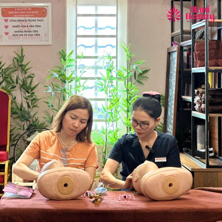 Chi phí khóa học tại Hani Academy được thiết kế hợp lý, phù hợp với nhiều đối tượng học viên, đồng thời chương trình đào tạo đa dạng, tích hợp nhiều lợi ích thiết thực. Đặc biệt, Hani Academy cam kết “không giấu nghề” – học viên được tiếp cận trực tiếp với chuyên viên giàu kinh nghiệm và thực hành trên người thật trong hơn 90% thời lượng khóa học. Điều này giúp học viên nhanh chóng nắm vững kỹ năng, tự tin phát triển sự nghiệp trong ngành nghề làm đẹp.
